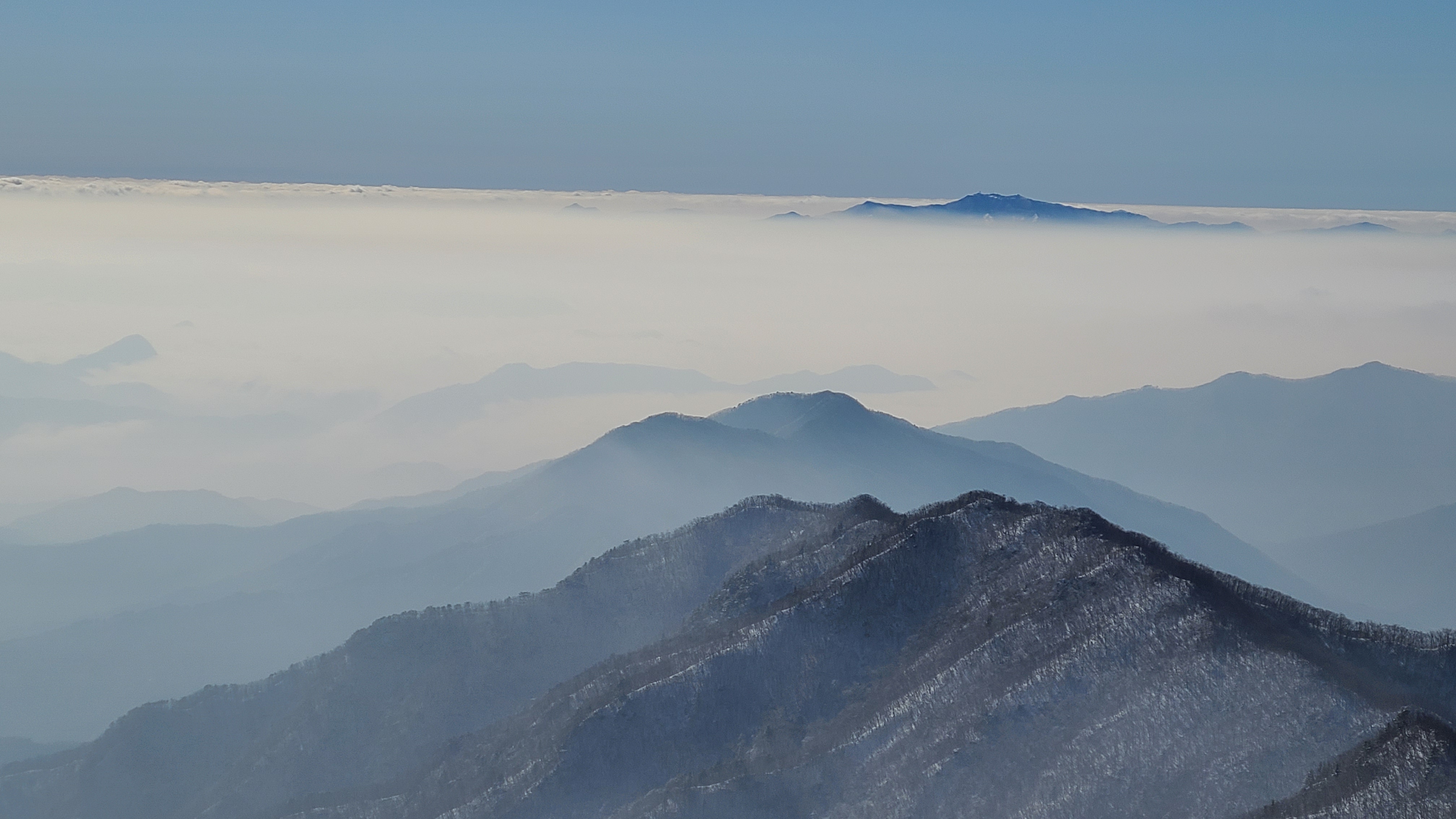 동해쪽으론 이름을 알 수 없는 놓은산들이 보입니다.
