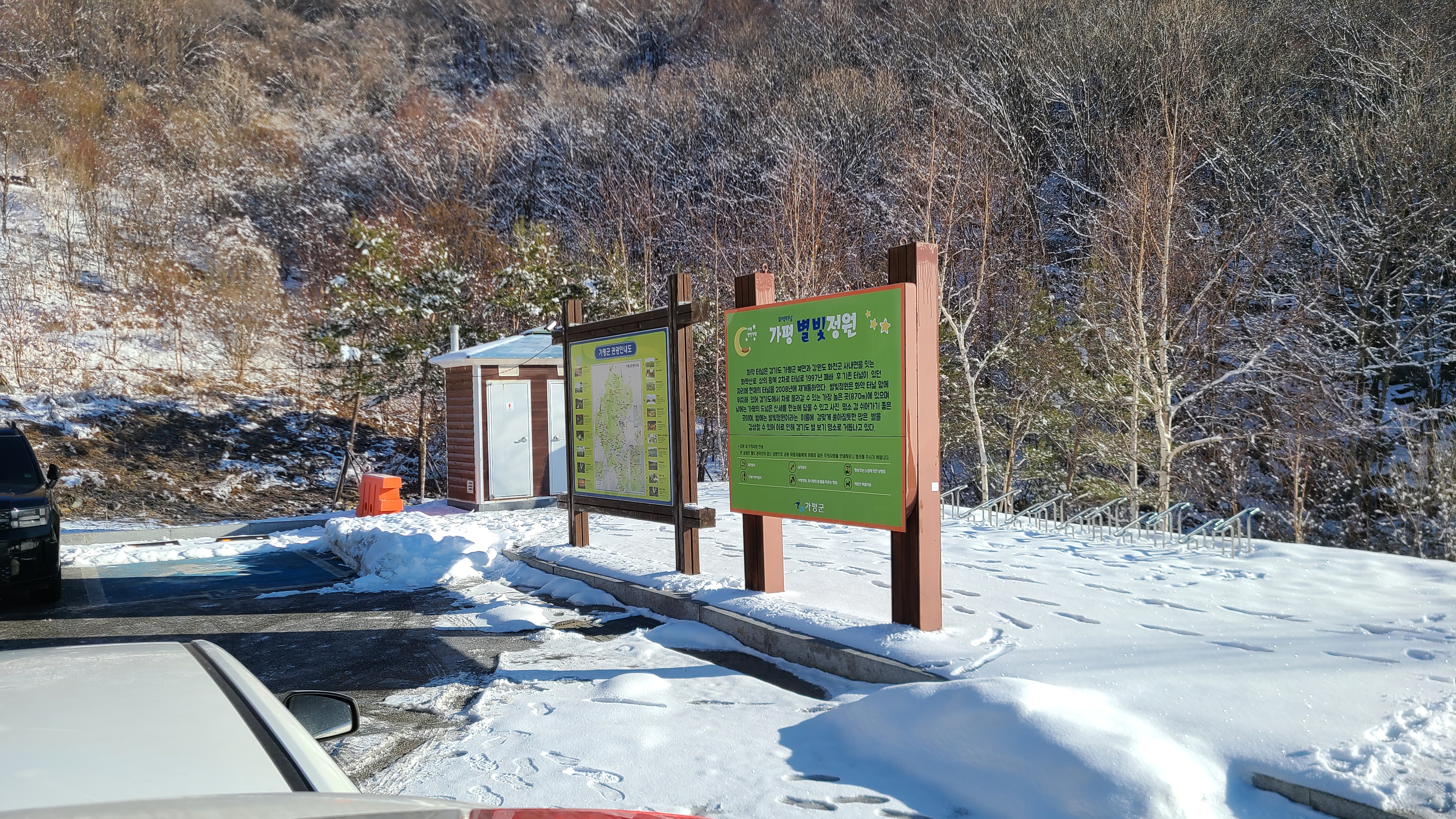 할 수 없이 화악터널 가평방향 작은 주차장에 주차를 합니다.