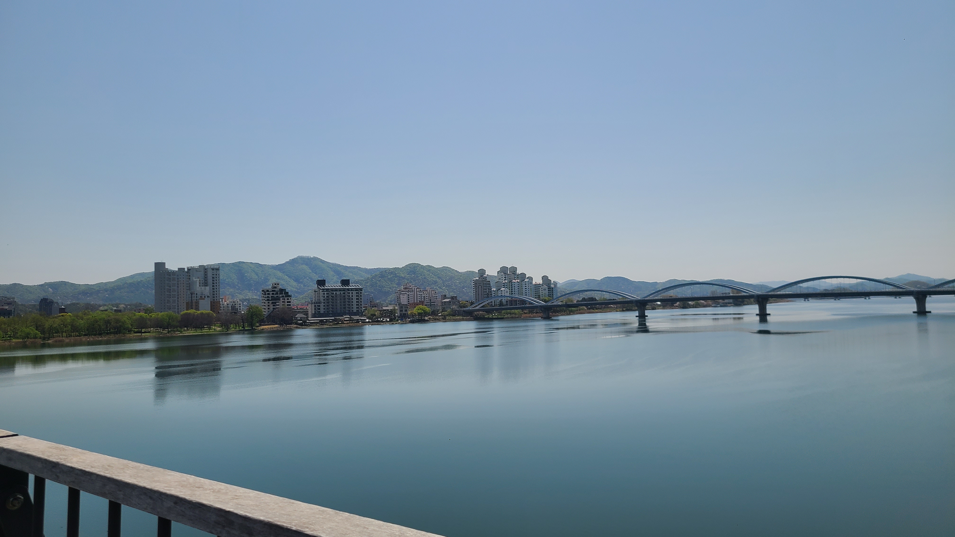 북한강 철교 건너 양수리 찍고 이제 되돌아갑니다.