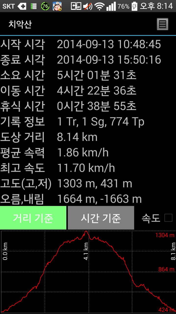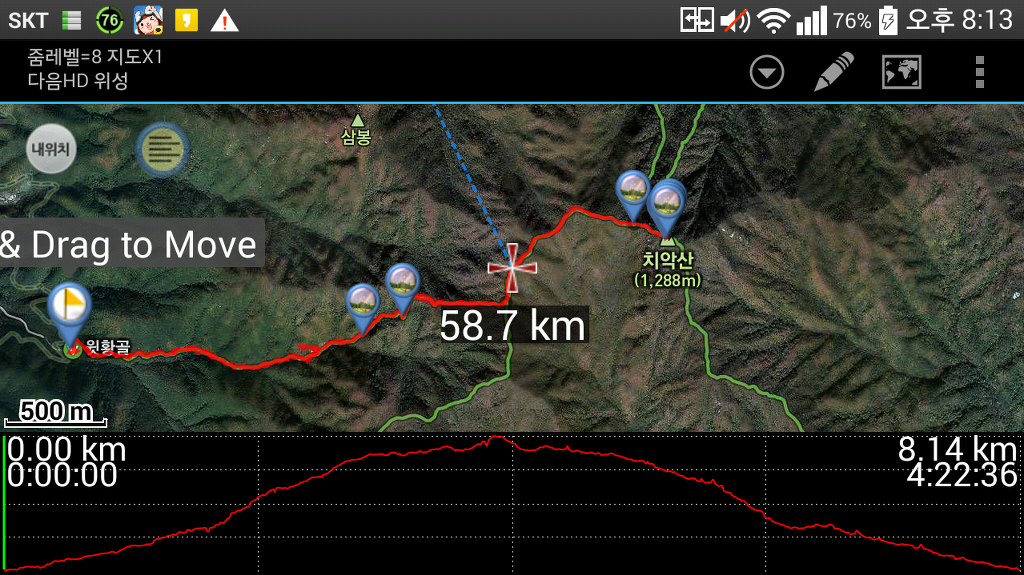 오늘 산행 거리는 8Km가 조금 넘는군요...