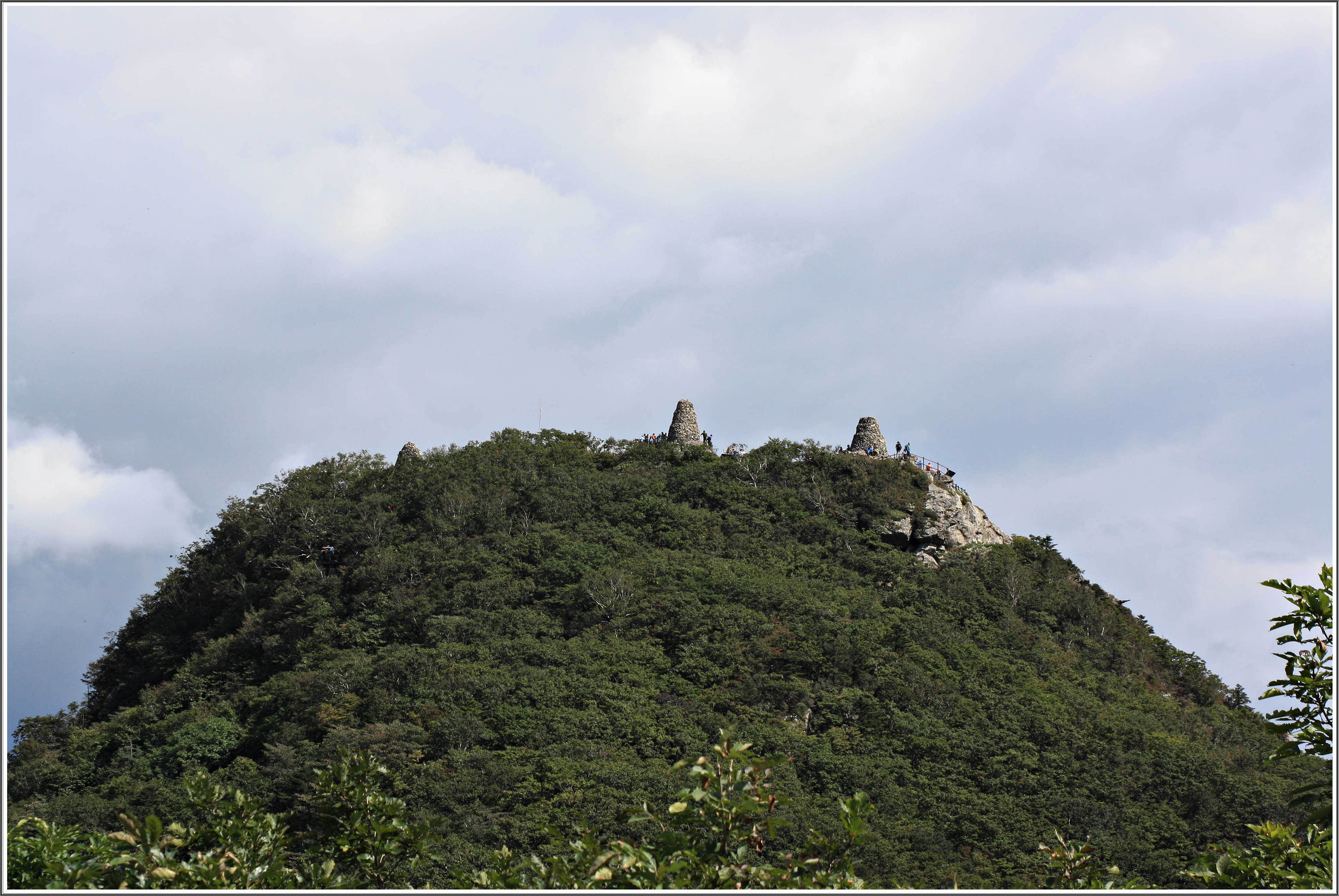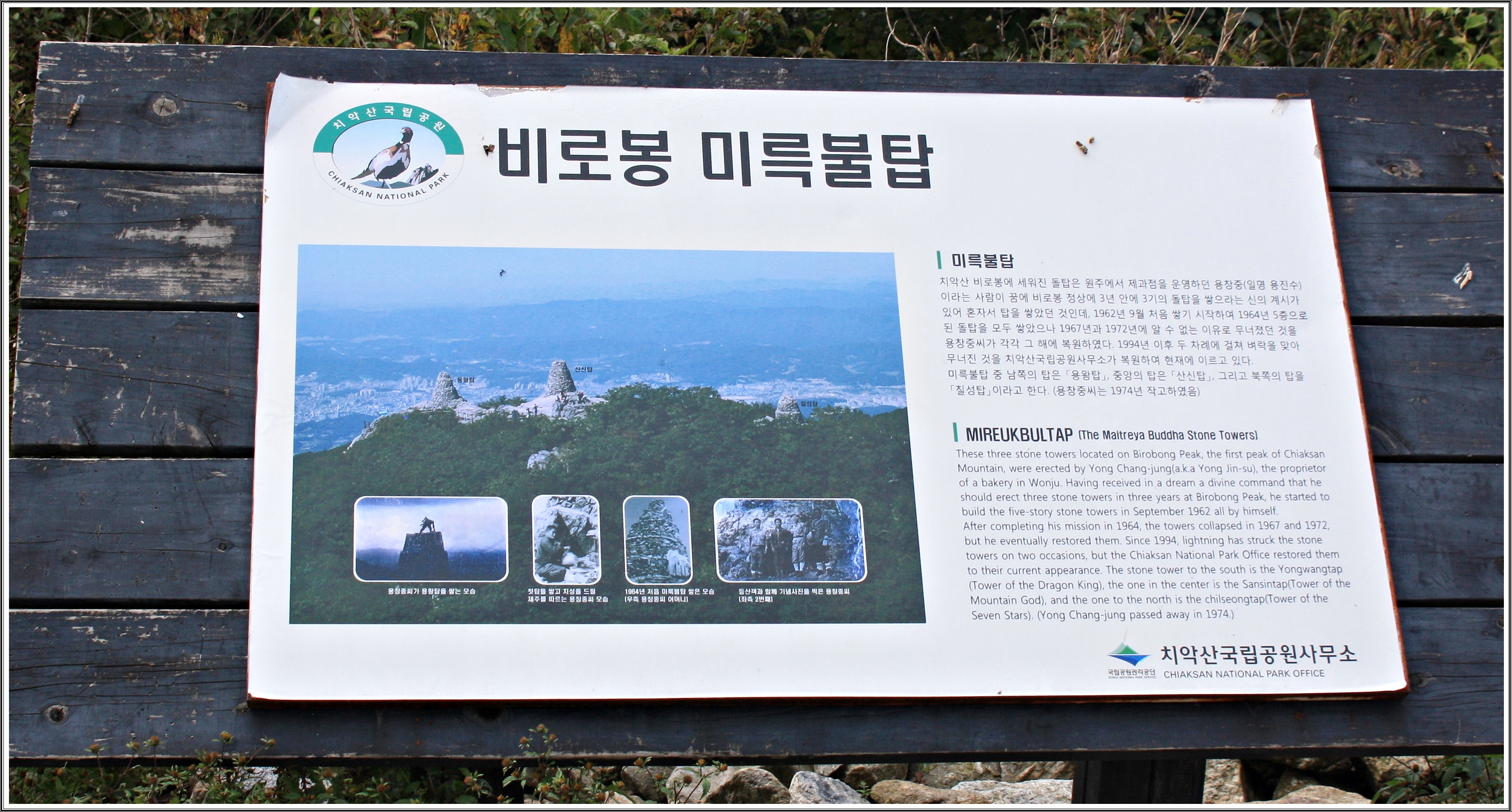 정상임을 알리는 미륵불탑 3개가 보입니다.