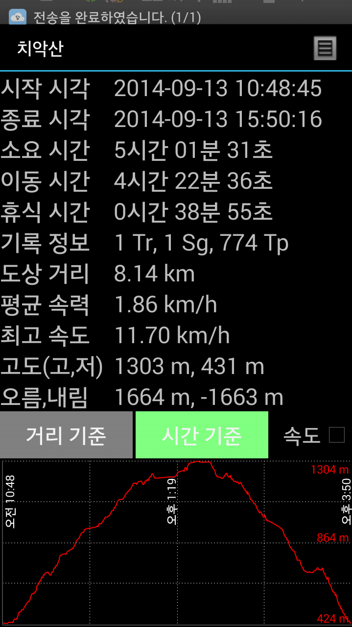 나들이 앱 GPS로 받은 높이는 1304m 되네요.