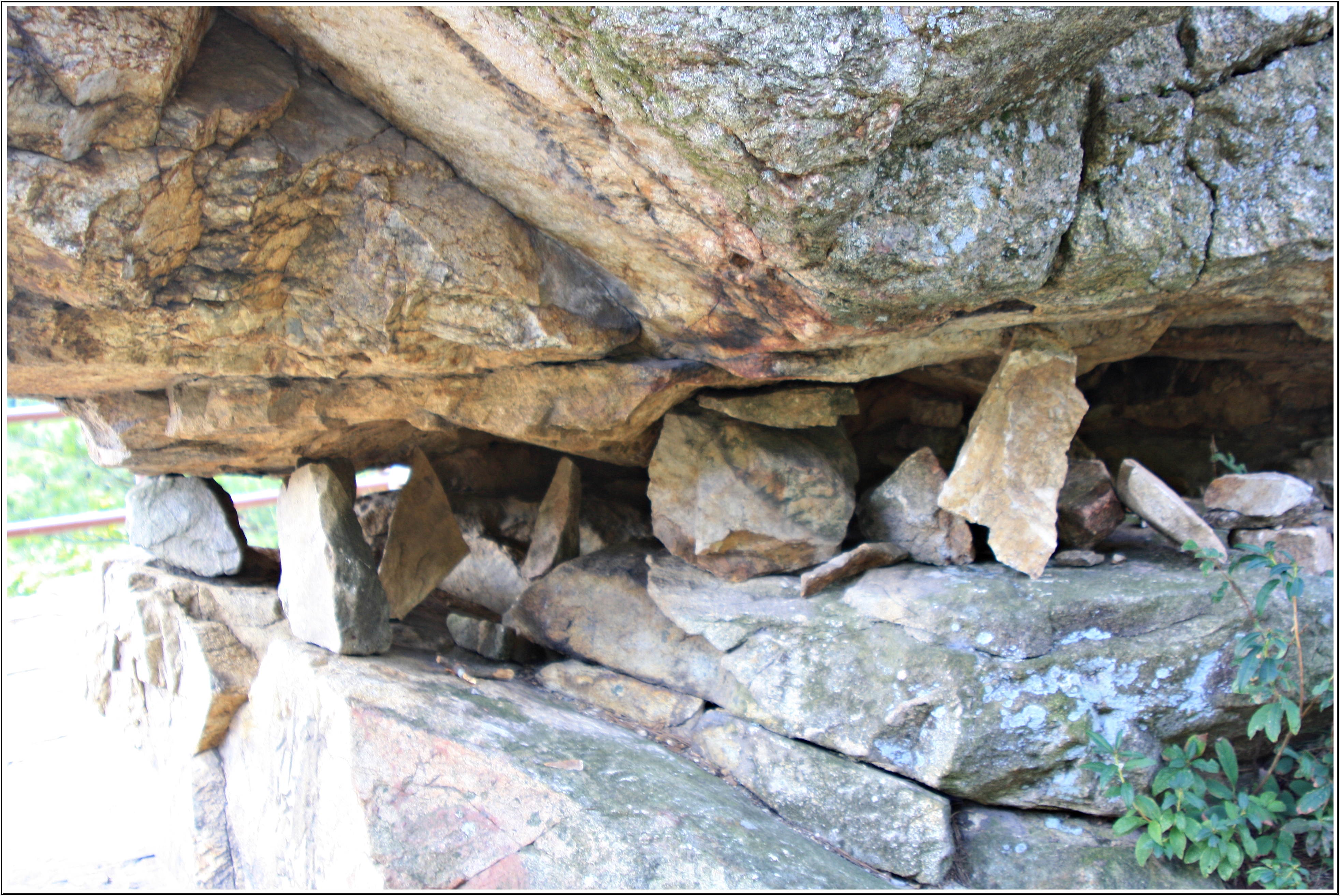 입석대가 넘어갈까봐 작은 돌로 끼워놓은 듯...