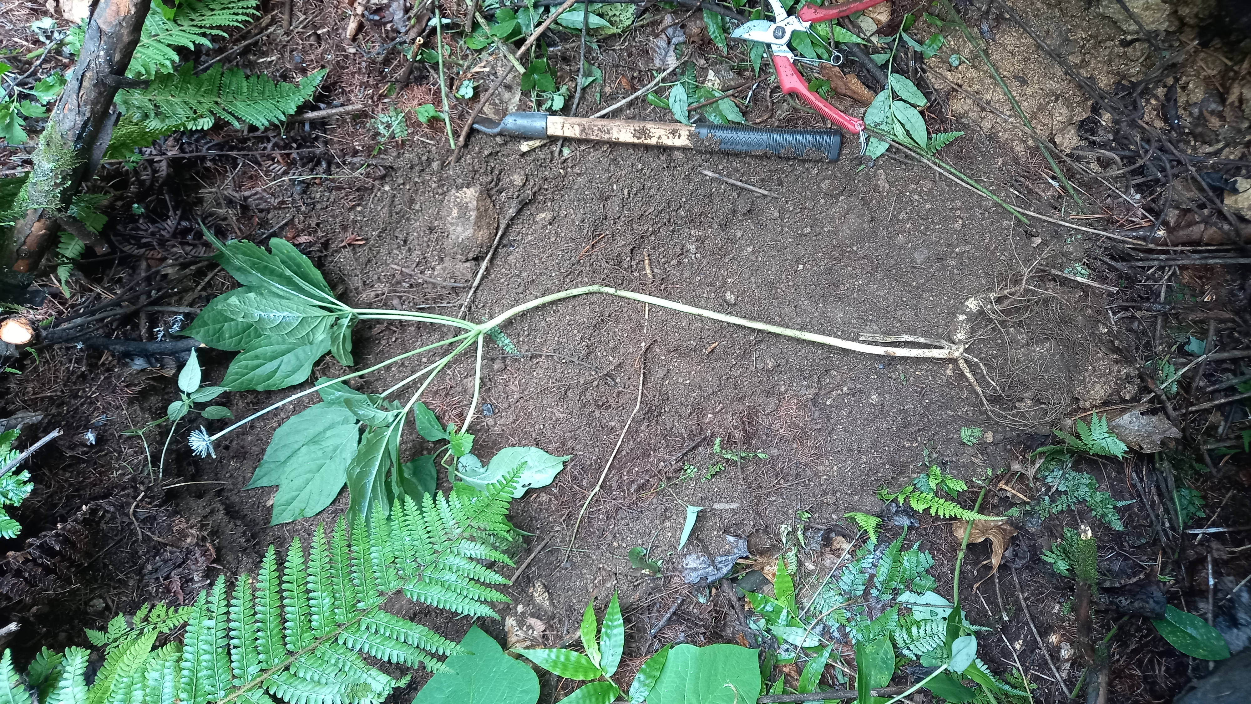채심 후 미수꾸리하고 발걸음을 옮기려고 넘어진 나무를 밟는순간 멍가 보입니다